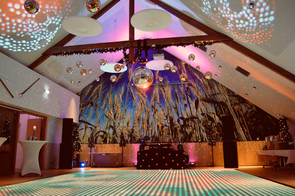 Großer, multifunktionaler Raum von 168 m² für Konferenzen, Hochzeiten, Partys und mehr, mit moderner Ausstattung und ansprechendem Dekor.